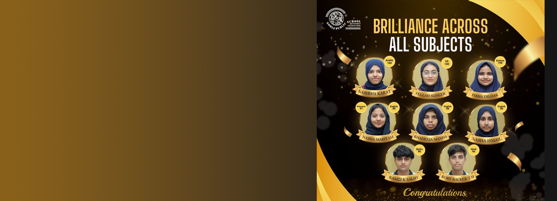 Noble is a residential and co-educational senior secondary school established in 1996 by Islahi Educational Society (IES) which is sponsored jointly by UAE Indian Islahi Center, Dubai and Kerala Nadvathul Mujahideen ( KNM ) to provide modern and moral educational facilities to students irrespective of religion, caste, creed or nativity. During the past years the school has accomplished tremendous academic and non-academic achievements and has earned a reputation for quality education in the CBSE stream especially in Malappuram district.
